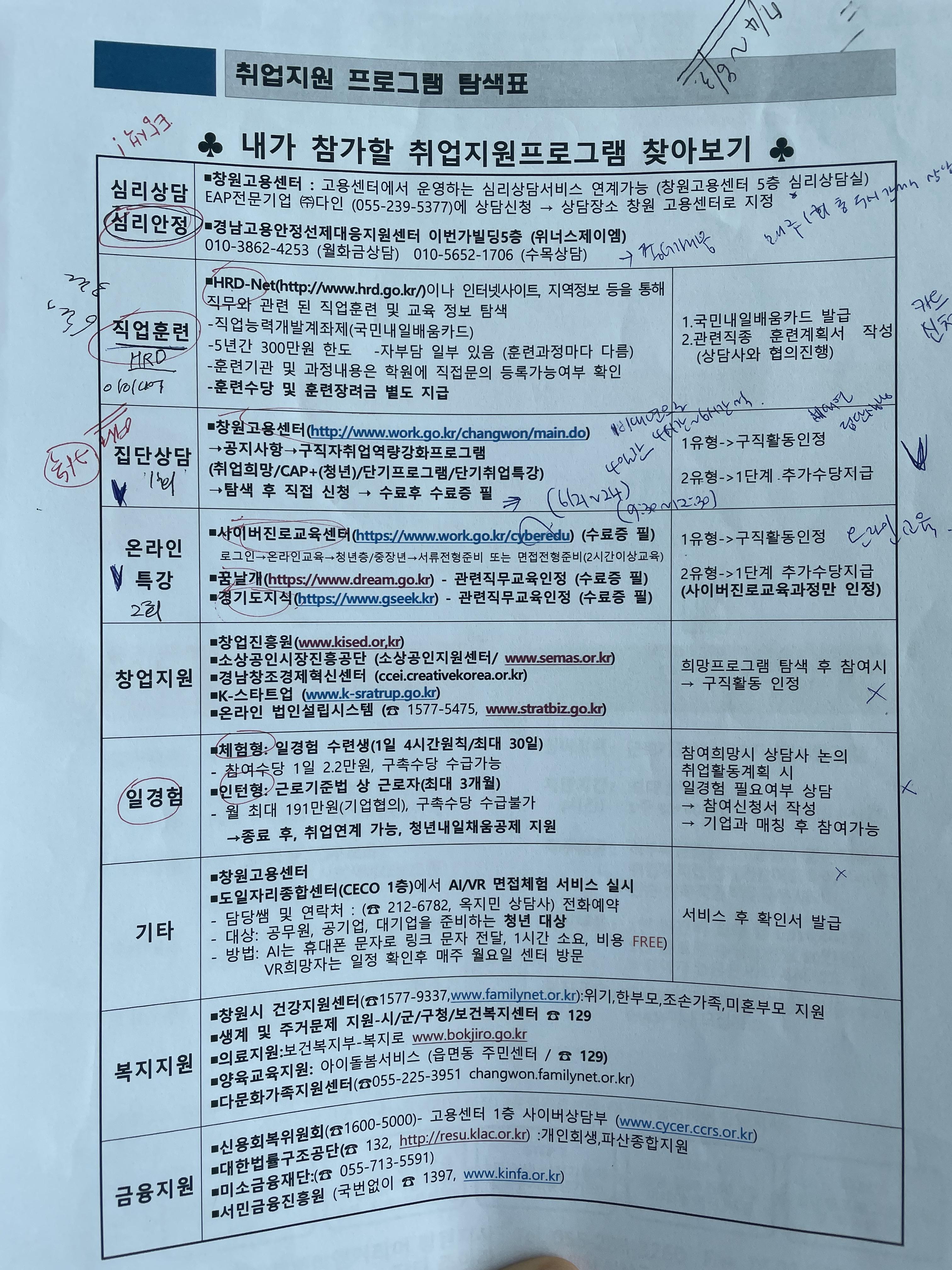 1차에서 마지막 상담인 세 번째 방문전에는 앞으로 남은 총 5회의 취업지원제도에 어떤 구직활동을 할 것인지에 대해서 계획할지에 대해서 생각해오라고 하셨다.