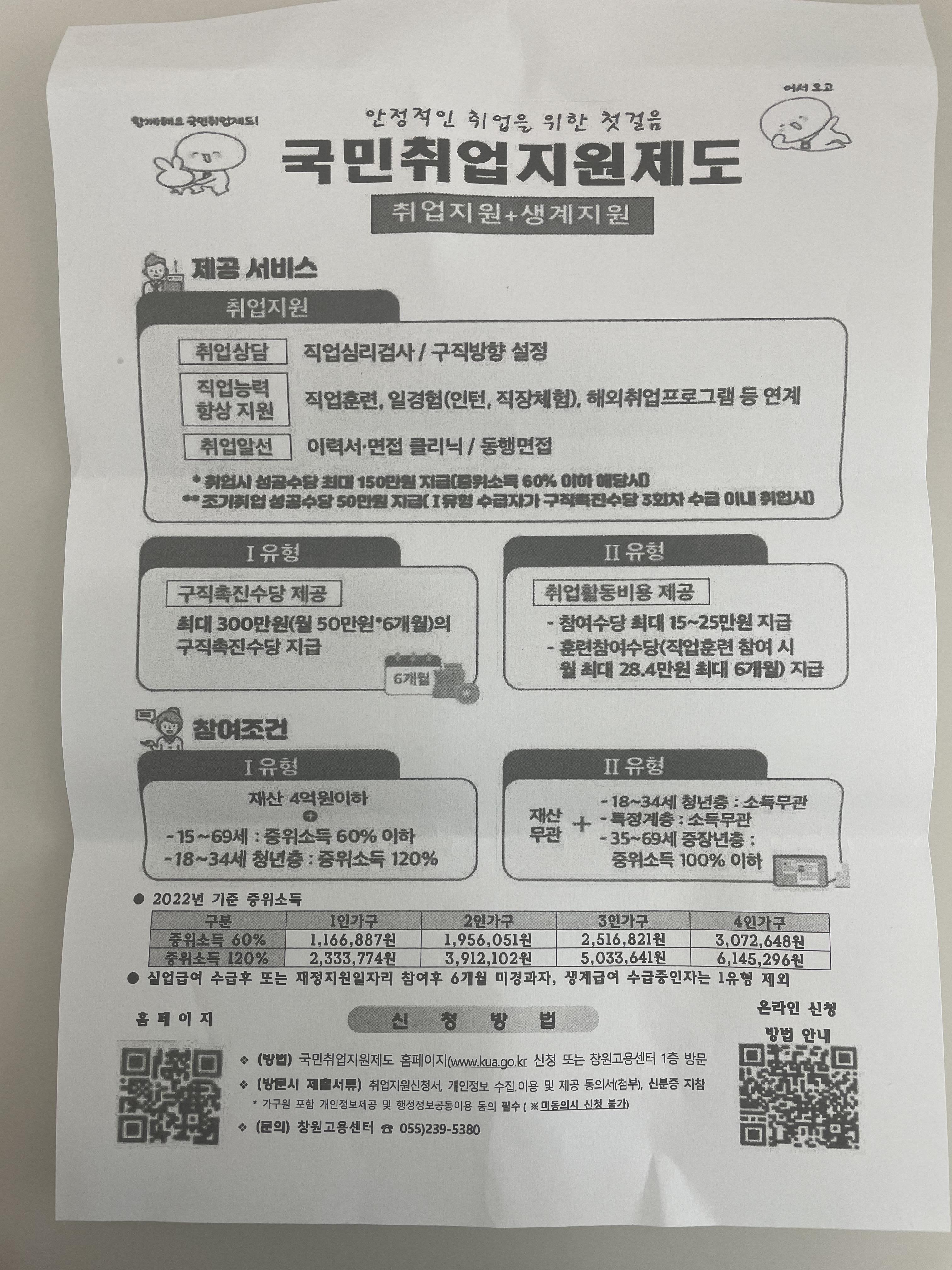 국민취업지원제도 1유형을 신청했다. 국민취업지원제도는 요즘 정말 많이 홍보를 하고 있다. 지역 신문에서도 접했고 플랜카드에서도 굉장히 많이 봤다. 심지어는 고용노동부에서 집으로 계속 우편물이 도착했다. 국민취업지원제도에 해당되니 신청하라는 우편물! 이렇게 친절하게 광고를 많이 해주고 있으니 나도 신청해봐야지!